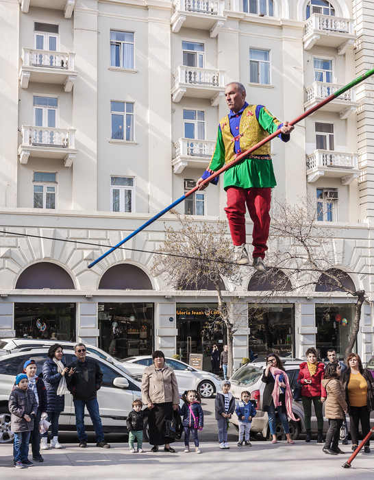To view the original image and license: https://commons.wikimedia.org/wiki/File:Equivibrist_in_the_streets_of_Baku.jpg